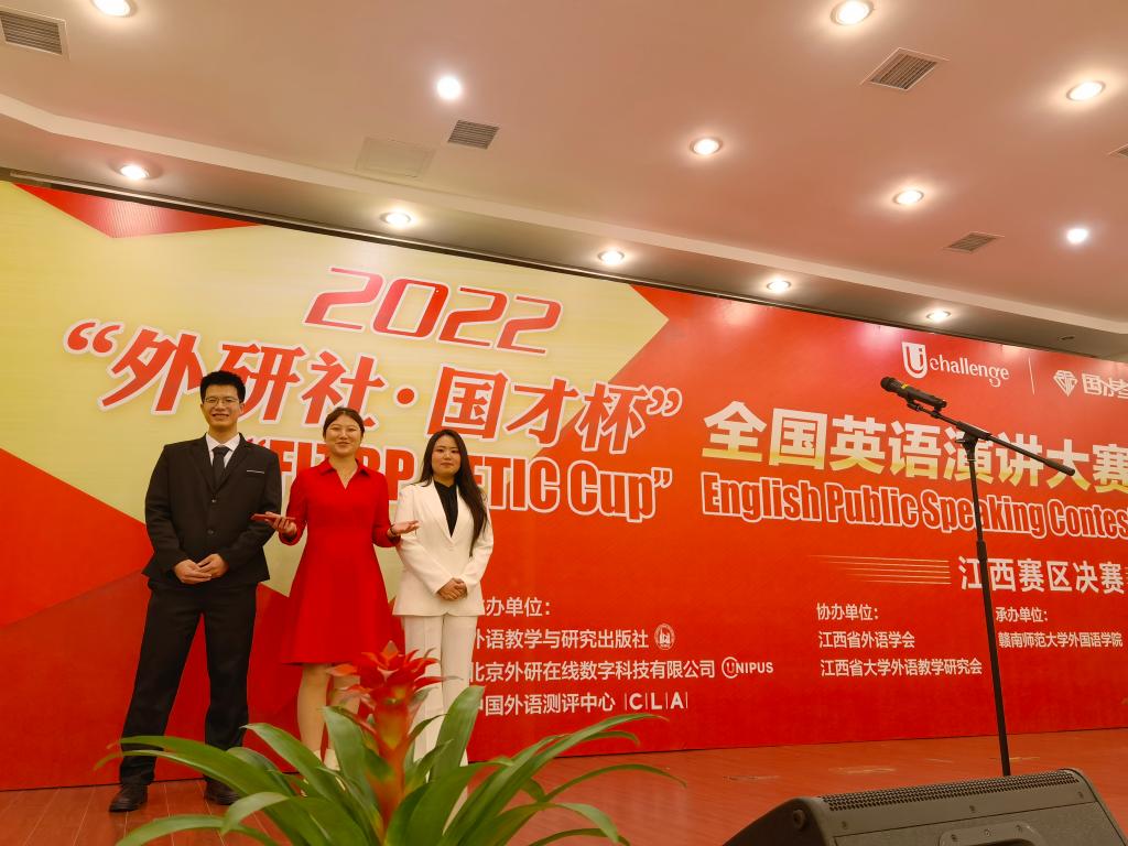 赛事背景介绍:“外研社·国才杯”全国英语演讲·写作·阅读大赛由外语教学与研究出版社、教育部高等公司大学外语教学指导委员会、教育部高等公司英语专业教学指导分委员会和中国外语与教育研究中心联合主办。来自南昌大学、江西师范大学等全省36所本科高校的300多名选手参加了本科组的比赛。此次大赛的演讲比赛在赣南师范大学举办,写作大赛和阅读大赛在线上进行。(文/曾玲娟 图/邹斯彧)