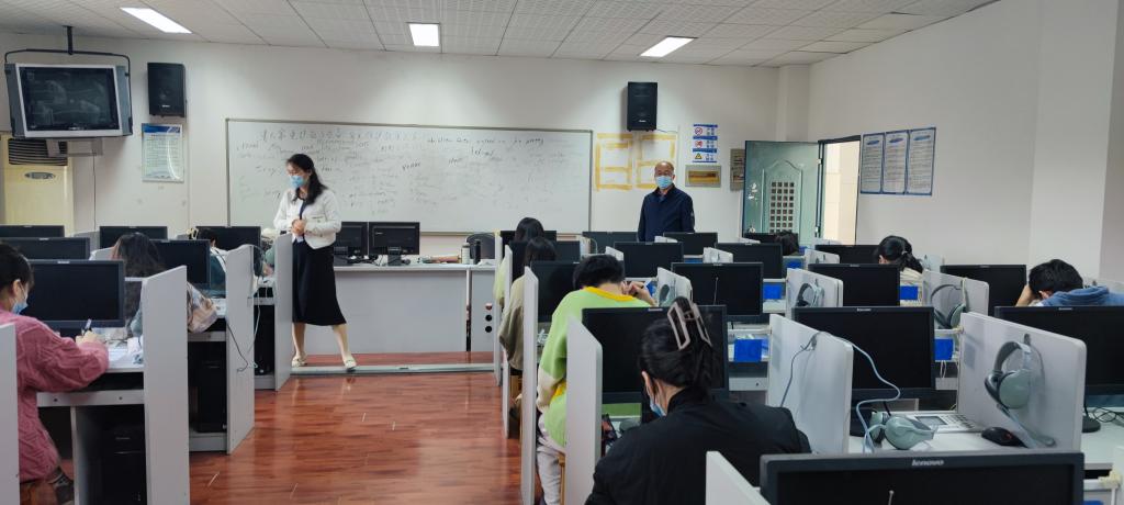 本次考试严格遵守考试相关要求和疫情防控规定,考生均戴好口罩,隔位就坐,监考教师认真核查学证件,考场秩序井然,考试顺利进行。(文/章婷玲 图/肖永贺)
