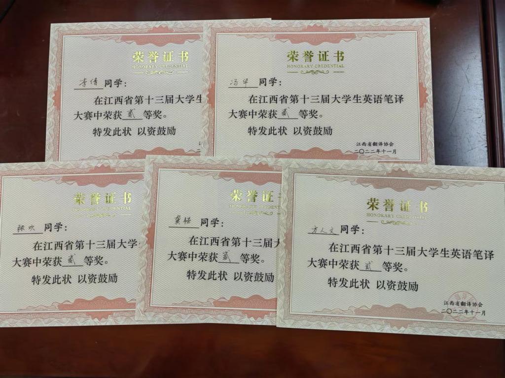 公司学子在江西省第十三届英语笔译大赛中喜获佳绩