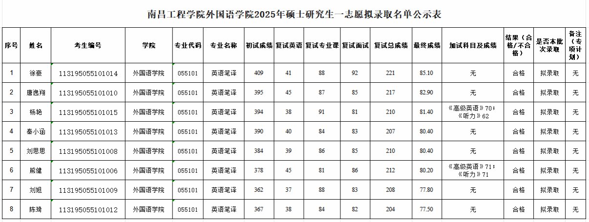 bevictor韦德2025年硕士研究生招生考试一志愿拟录取名单公示