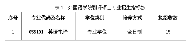外国语公司翻译硕士(英语笔译)专业招生指标数如下表1所示。