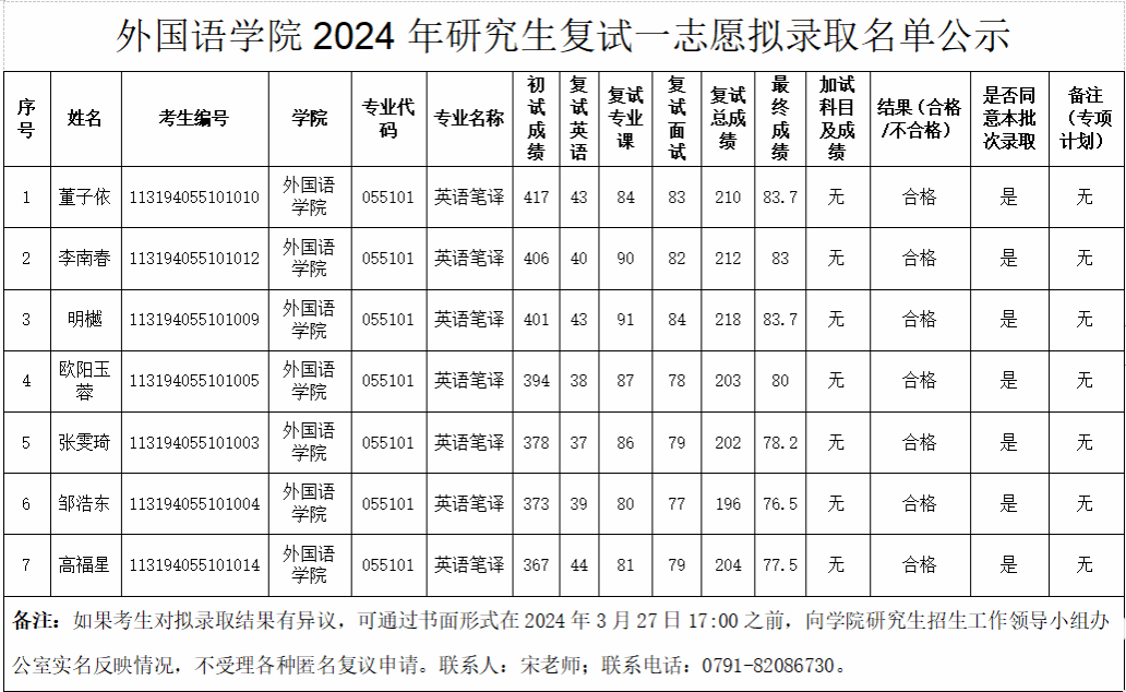 bevictor韦德2024年研究生复试一志愿拟录取名单公示
