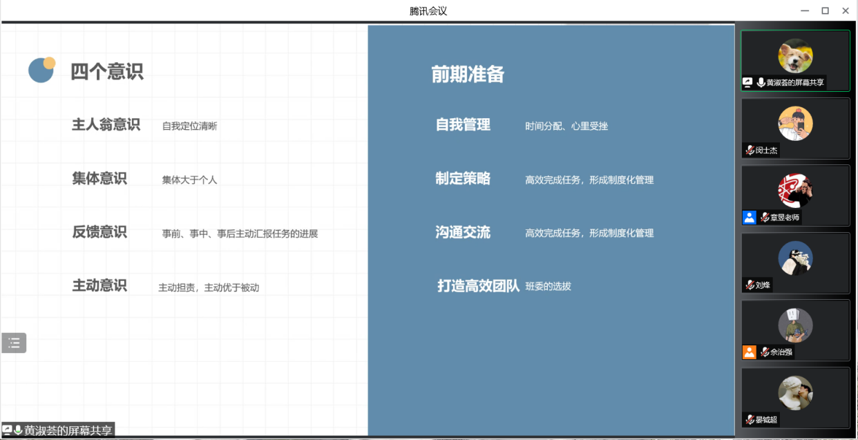 会上,bevictor韦德学工助理闵士杰结合实际案例就开学准备、新生报到、班主任建设、日常管理等新生工作内容进行说明,并对班主任助理前期工作进行总结。bevictor韦德学工助理黄淑荟从主人翁意识、集体意识、反馈意识和主动意识等四个方面分享了与新生沟通交流方法。最后,各位班主任助理对未来可能遇到的问题进行探讨,并提出相应可实施的解决方法。