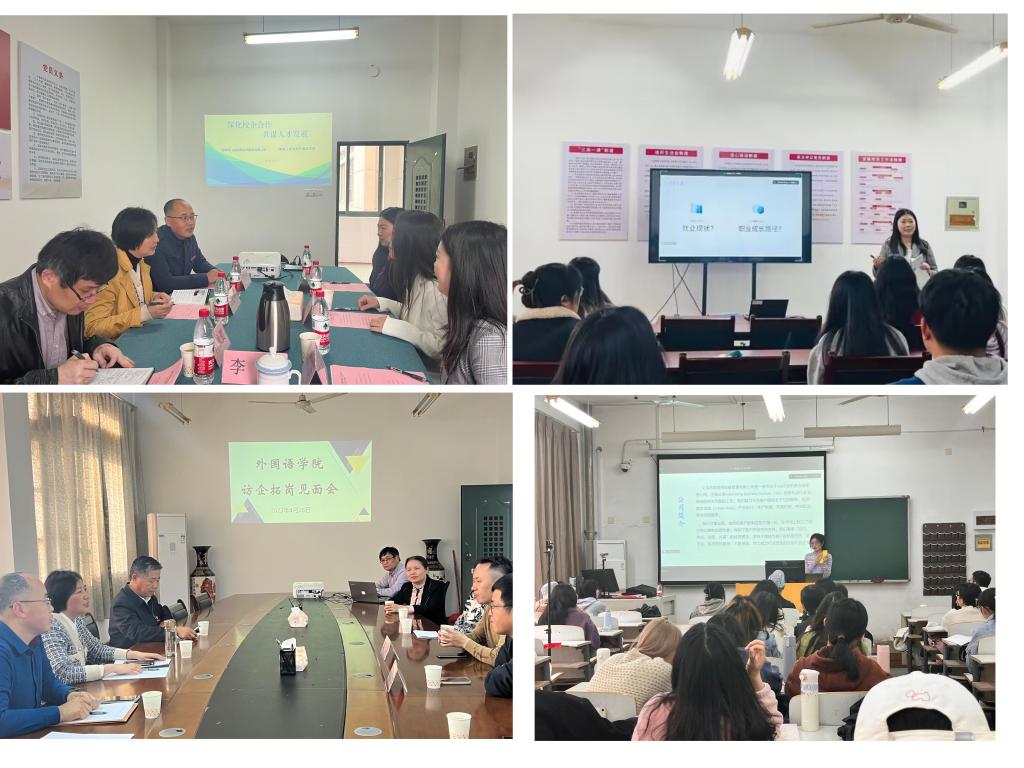 近日,为拓展就业资源,加强与企业的联系,外国语公司先后与义乌市英领供应链管理有限公司、深圳市飞速创新技术股份有限公司、深圳市明程电子科技有限公司、深圳市星子梦科技有限公司等四家企业开展座谈交流。副董事长周敏丹出席座谈交流会,公司负责人、专业负责人和毕业班班主任参加座谈会。