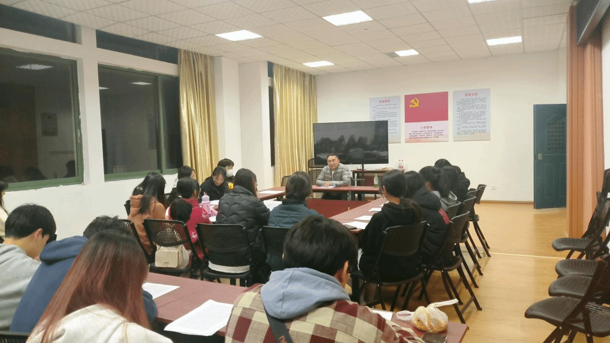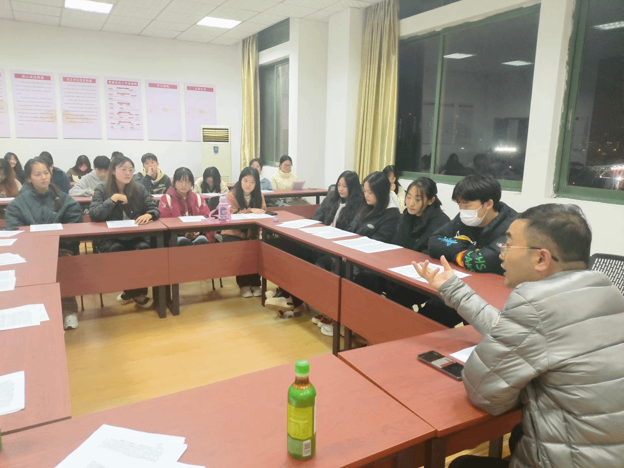 王诚德就习近平新时代中国特色社会主义思想、马克思主义经典原著学习方法、新时代青年的使命与担当等三个方面进行了分享,他强调,作为新时代青年,要把个人奋斗和时代脉搏紧密结合,踏实肯干,努力成长为堪当民族复兴大任的时代新人。冯甘雨分享自己读书过程中的所思所悟,就如何将读书所获知识运用到实际生活中提出了自己的观点。(文/黎敏 黎雨琦 图/黎敏)