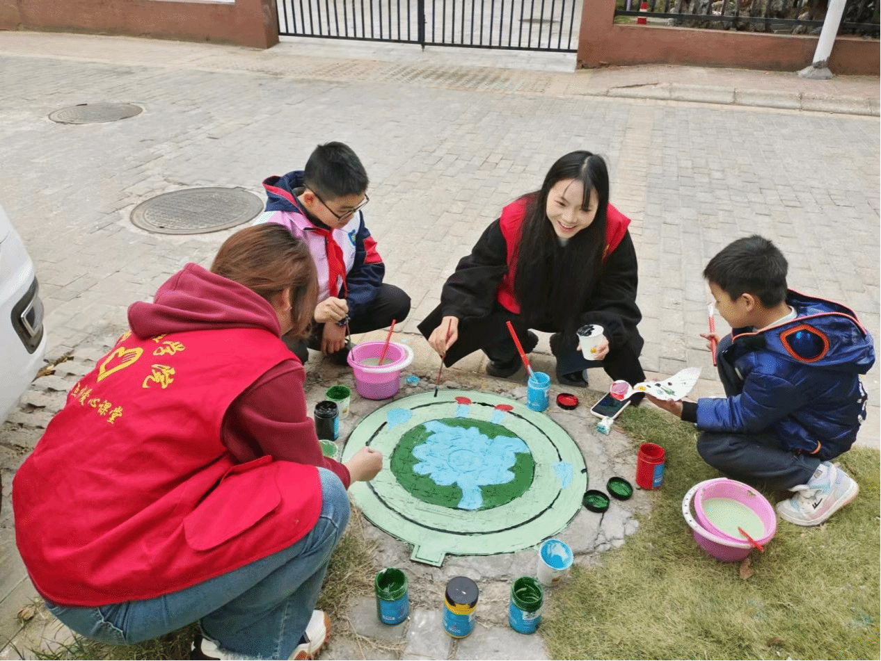 活动开始前,王聪在艺术楼前发表讲话,表达了对志愿者的无私奉献志精神的称赞,并提醒志愿者们在前行途中注意人身安全。活动中,志愿者对京荣社区井盖进行涂鸦美化,志愿者们分工合作,有条不紊,积极投入到活动中,获得居民的一致好评。