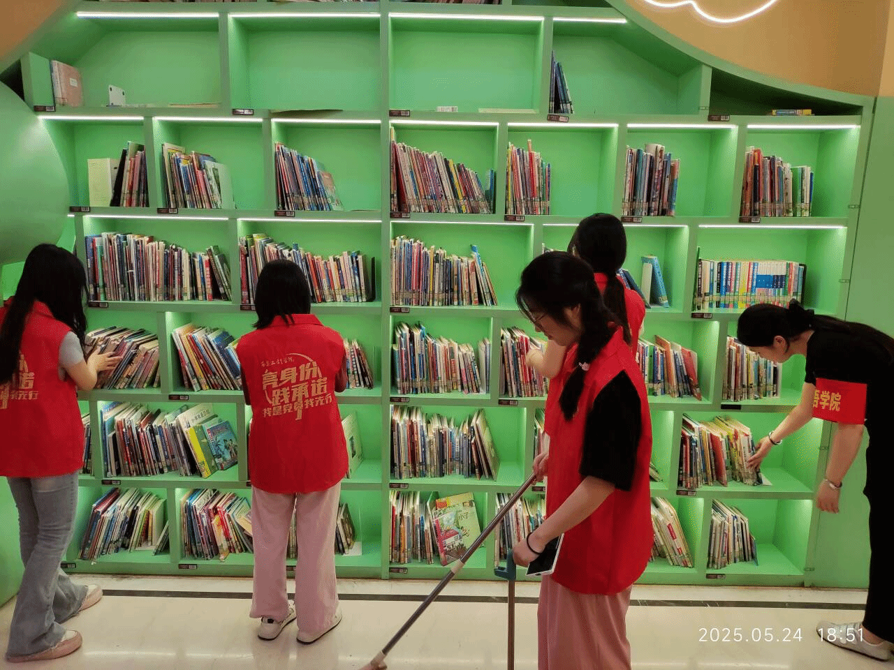 活动中,支部党员分组协作,承担了多项任务。在图书整理区域,志愿者依据图书分类标准,甄别并归位错架、散放的书籍,整理书架秩序,便利读者查找借阅。在图书馆外围区域,志愿者留意绿化景观情况,对意图采摘花卉的读者进行劝导,维护周边环境。在卫生清洁方面,党员们分工明确,对书架间隙、阅览区桌椅及公共走廊等区域进行了清扫,改善馆内环境卫生。
