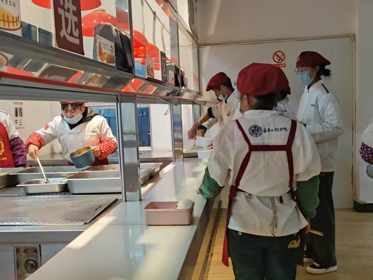 在体验劳动的过程中,同学们按规定佩戴一次性帽套及口罩与食堂员工一起凌晨三点开始工作,将食材进行清洗、加工和烹饪,为全校师生准备热腾腾的早餐、中餐和晚餐。非用餐时间,同学们跟随工作人员有序进入公司食堂后厨和食品检验中心,实地观摩员工食堂规范化管理及食品加工操作等各环节流程,阅览了采买、蔬菜质量检测、添加剂使用、留样等记录台账本。同学们表示,每一位校内职工真正地把员工的生活高度重视起来,落在实处,让南工的孩子感受到安全和温暖,这是一次令他们记忆深刻的劳动教育实践活动。