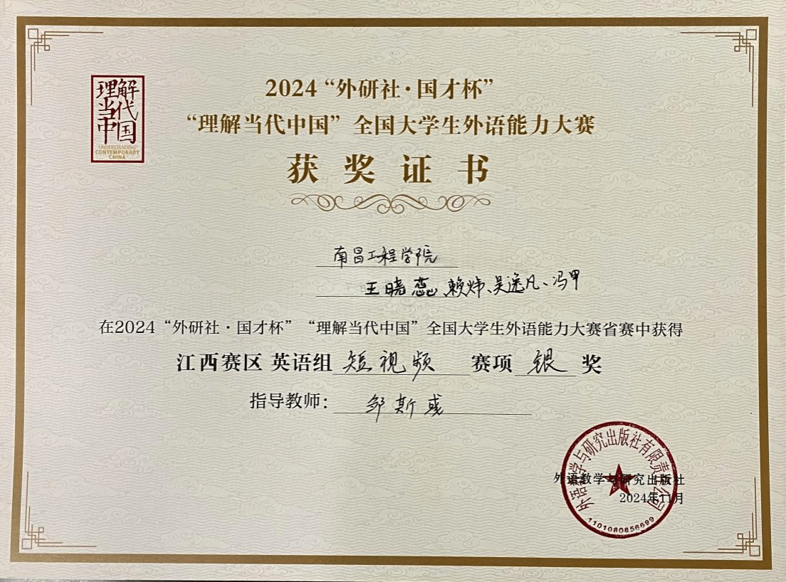 2024年“外研社·国才杯”“理解当代中国”江西省老员工外语能力大赛系列赛事近日圆满落幕。bevictor韦德2023级翻译硕士研究生王晓蕊团队制作、邹斯彧老师指导的《智慧农村丨Smart Villages》作品荣获本届大赛江西赛区英语组短视频赛项银奖。